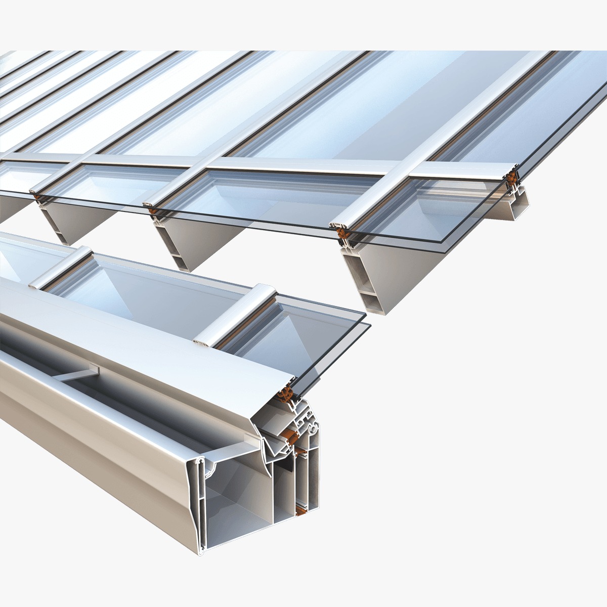SMARTIA M10800 is a complete insulated system for atriums, which is ideal for sturdy constructions and can meet effectively all architectural requirements, as for example the creation of simple and complex polygonals and conservatories