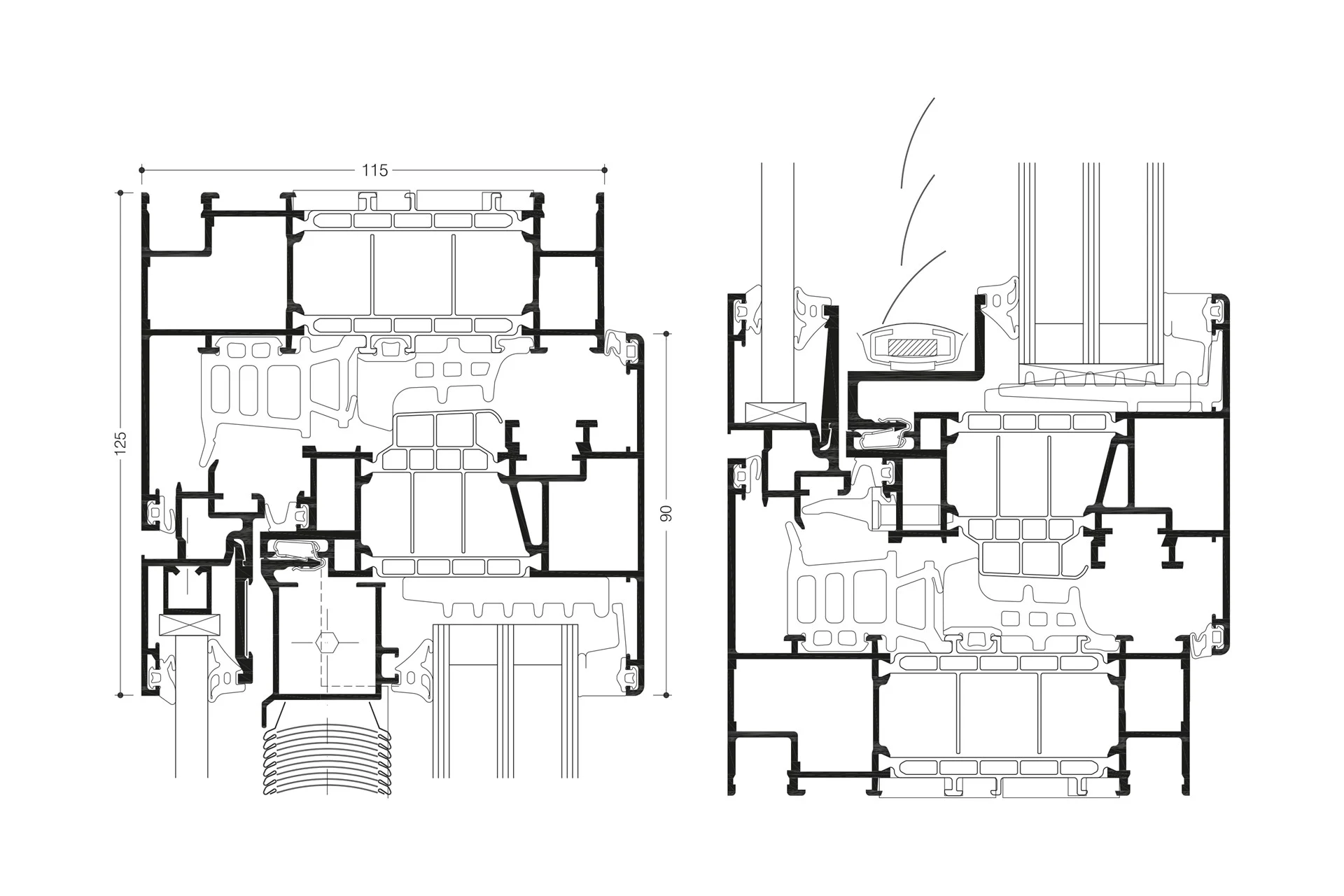 • Uw values below 0.80 W/(m²K) with a 115-mm frame depth and a sleek sight line of only 125 mm, a unit size