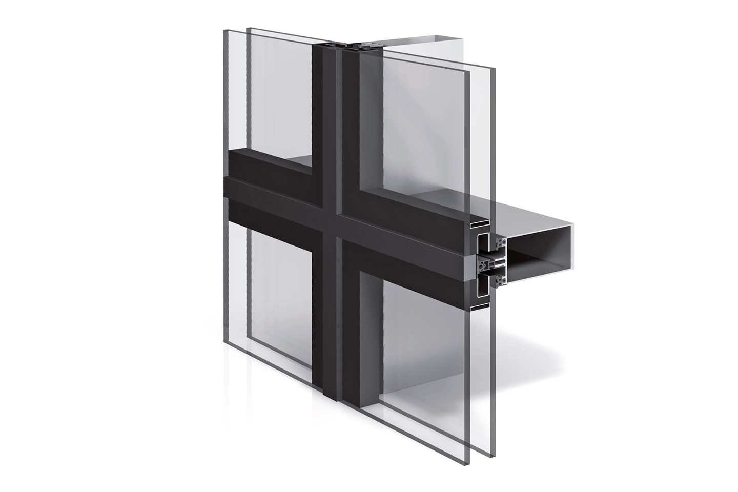 Internal aluminium profiles 50 mm / External silicone joint 23 mm